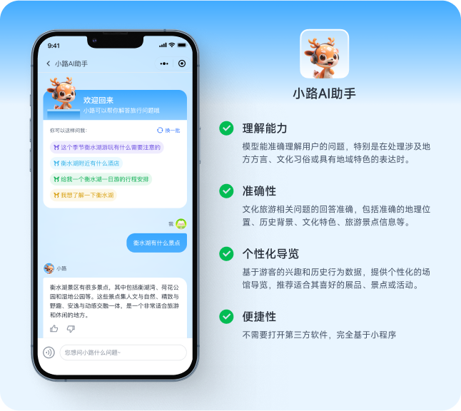 AI文旅行業(yè)模型是一款綜合性人工智能應(yīng)用,旨在提升旅游體驗和優(yōu)化內(nèi)容創(chuàng)作。基于大模型生成式智能問答、個性化伴游助手、行文助手(標(biāo)題取名、文章潤色、文章摘要、關(guān)鍵詞提取)、圖像識別、文轉(zhuǎn)語音等。